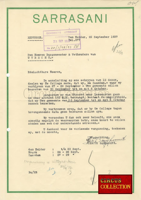 | Papier à entête du cirque Sarrasani 1937 Collection Philippe Ros |